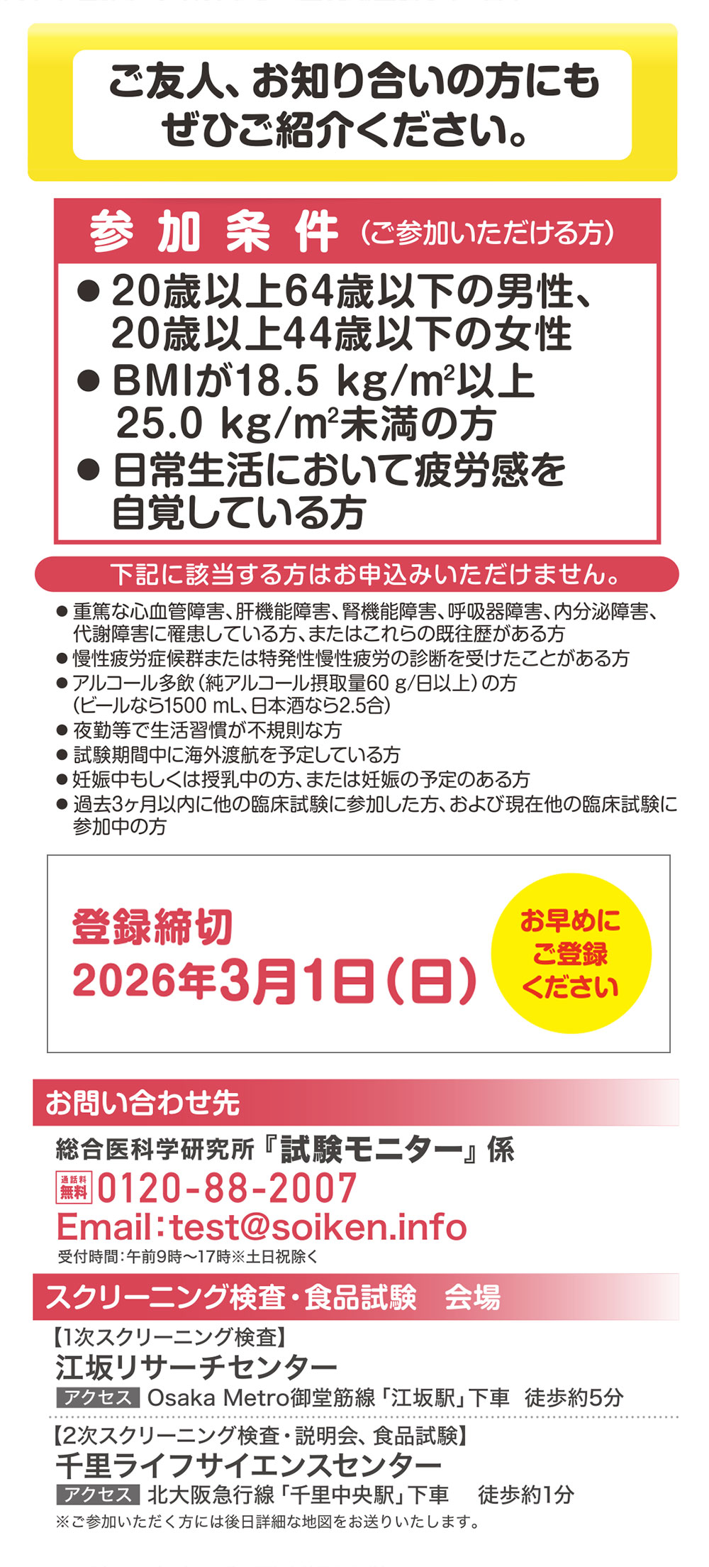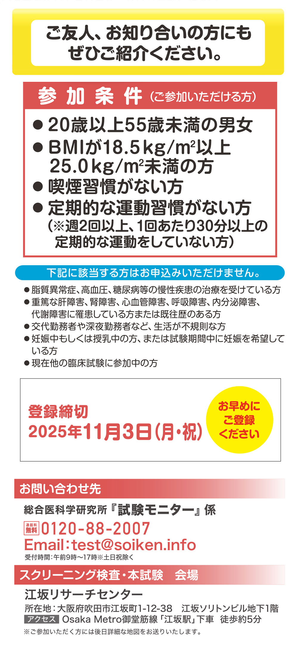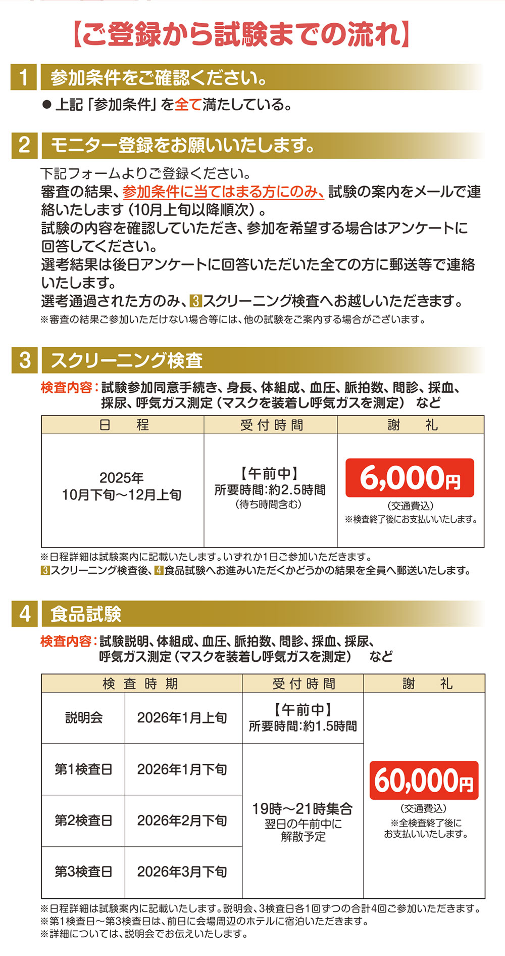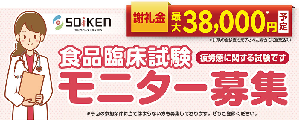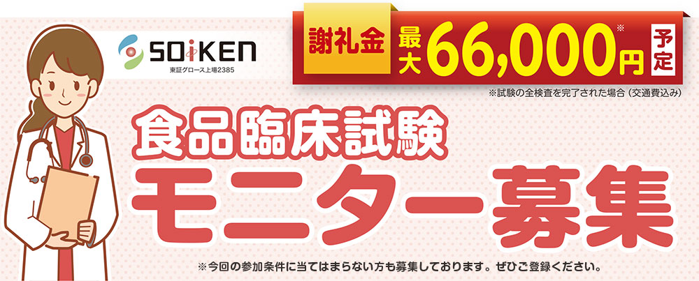 現在、当社では食品の臨床試験における「新規登録モニター」を募集しています。